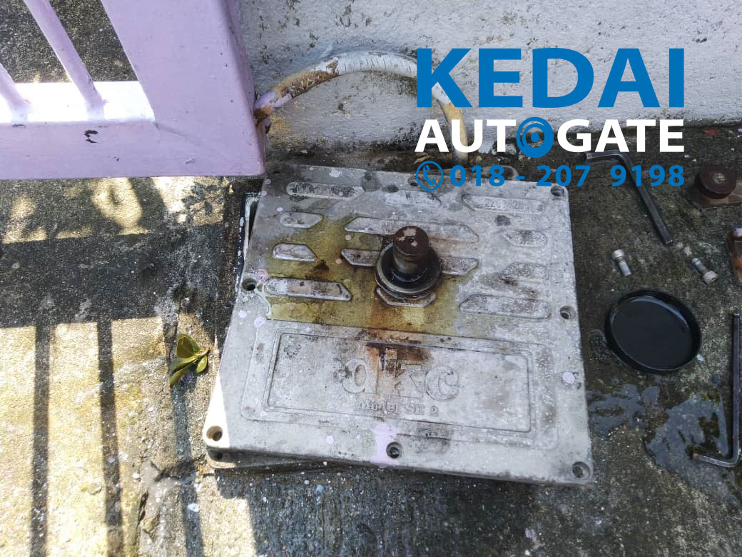 Tengok pada gambar tersebut, sudah berapa lama anda rasa underground autogate ini digunakan. Customer cakap dah lebih 15 tahun, semenjak setahun lepas, selalu ada masalah dan sudah beberapa kali membaikinya. Kami datang untuk melakukan autogate troubleshoooting, bila kami periksa autogate gearbox rosak, autogate clutch pun rosak.